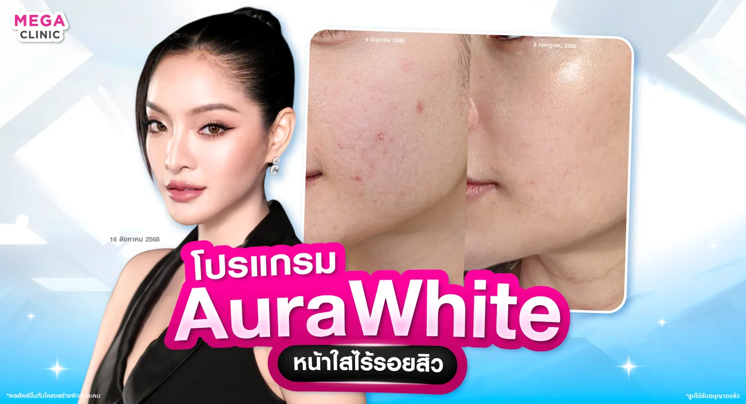 ตัวอย่างผลลัพธ์ เคสทำโปรแกรมออร่าไวท์ลดรอยสิวรอยดำอย่างต่อเนื่อง (ลูกค้าเมกะคลินิก)